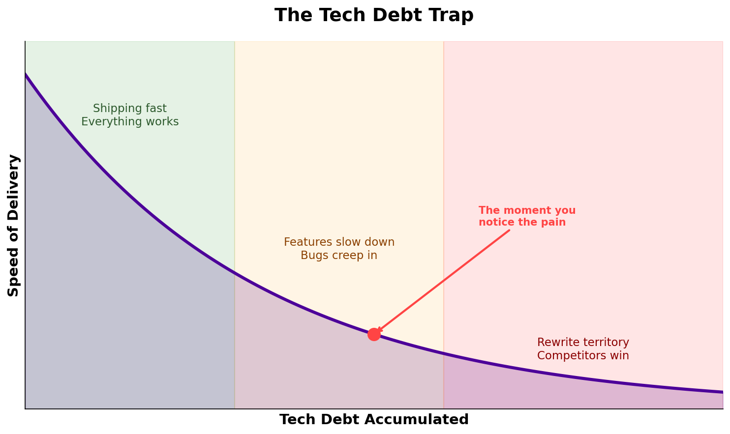 The code keeps working. The product keeps making money. There’s no alarm, no dashboard turning red, just a gradual erosion of your ability to move.